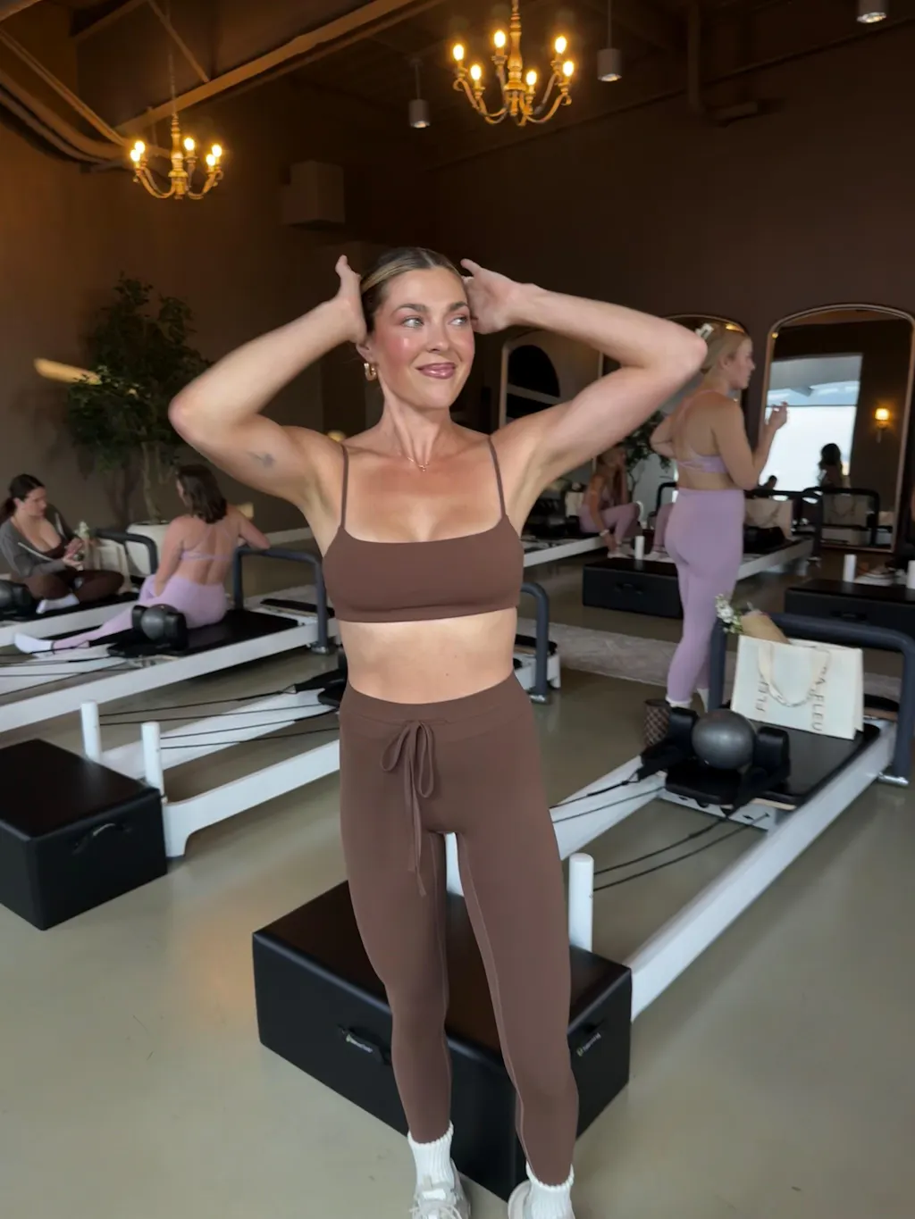 The Flow Drawstring Legging redefines studio luxury with a delicate drawstring waist that allows for a customizable, cinched fit. Designed to contour and elongate, this silhouette enhances the waist while offering fluid movement and elegant support.